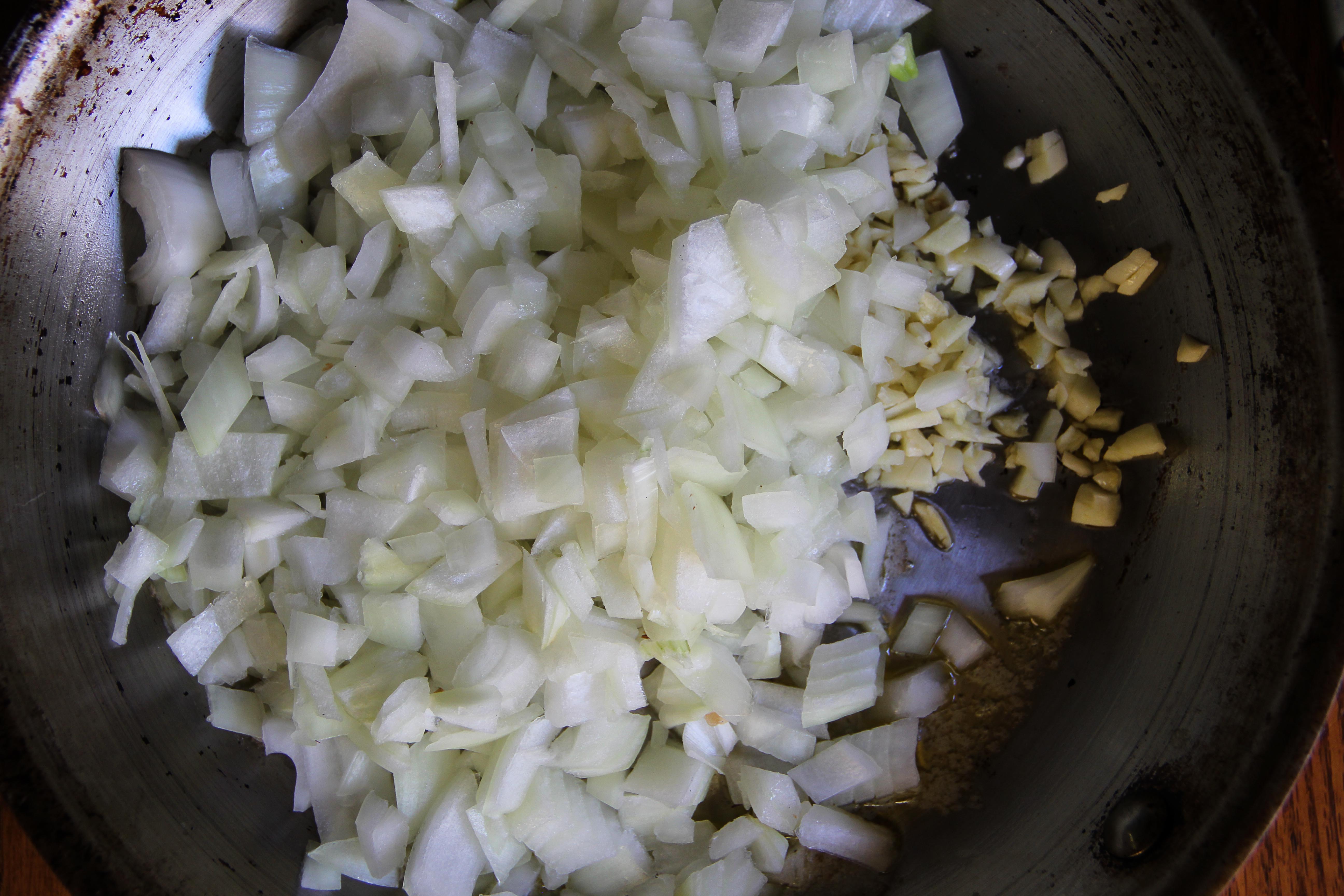 7. Cook the onions and garlic until they become somewhat translucent. This will take about 3-5 minutes. Stir them frequently so that they do not burn. This is what they will look like when you’re ready to move on to the next step.