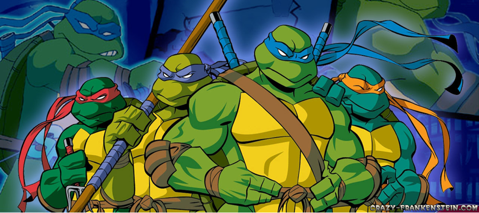 Ninja Turtles: Four turtles, April O’Neil, Krang, Bebop and Rocksteady, Shredder, Splinter. Kowabunga!