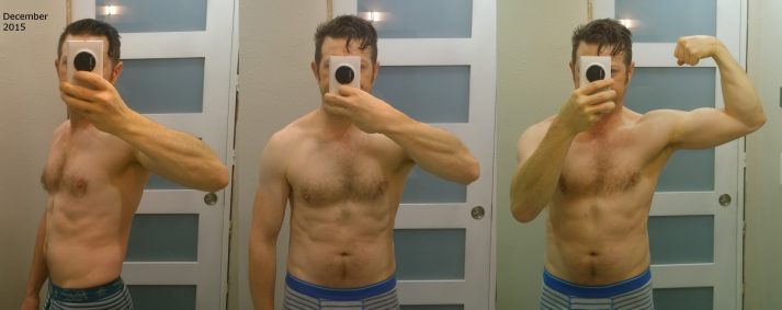 Thanks to his increased focus on a healthy relationship with food, his weight fluctuated naturally between 165 lbs. and 170 lbs. Some months he decided he wanted to trim down, and he cut his calories down to 1600, while other months he increased his calorie intake to 4,000 on workout days, and 2,800 on off days.