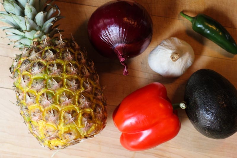Note: The instructions below are for a simple raw pineapple salsa that should only take as long to make as it does for you to chop the ingredients and mix them together with a spoon.