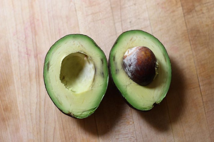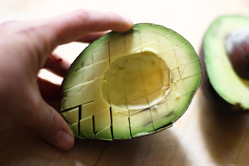 Then, make slices vertically down one of the halves. (I chose the half without the seed so I wouldn’t have to take out the seed right then.)