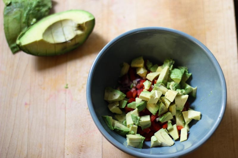 If you have more time (or are a more advanced cook) and would like to deepen the flavor of your salsa, throw everything but the garlic and avocado on the grill or in the oven to roast them a bit before chopping!