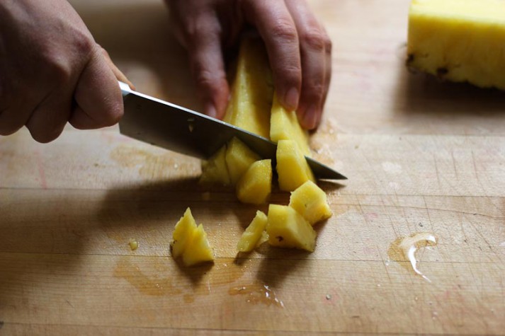 4. Now it’s time to cut the pineapple! I so rarely buy pineapples at the store, but luckily the day I went shopping, not only were pineapples on sale, but they were also ripe! Score!