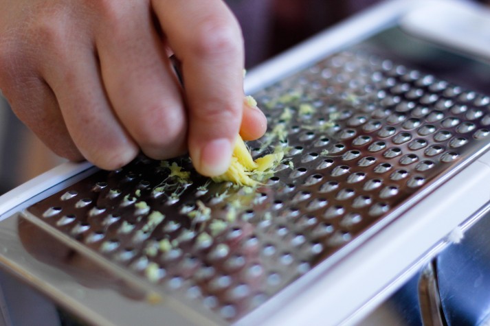 If you do choose to shred it, be careful with your fingers and note that you’ll be holding onto a weird, stringy little stump when you’ve finished shredding. Just toss that bit. You don’t really want a knot of ginger fibers (or finger fibers) in your meal.