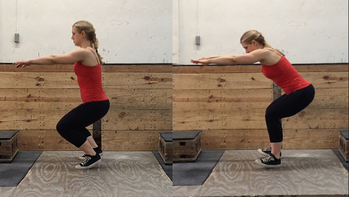 Squatting to a box will help teach you to sit back and keep your weight on your entire foot, instead of squatting with your knees forward and up on your toes.